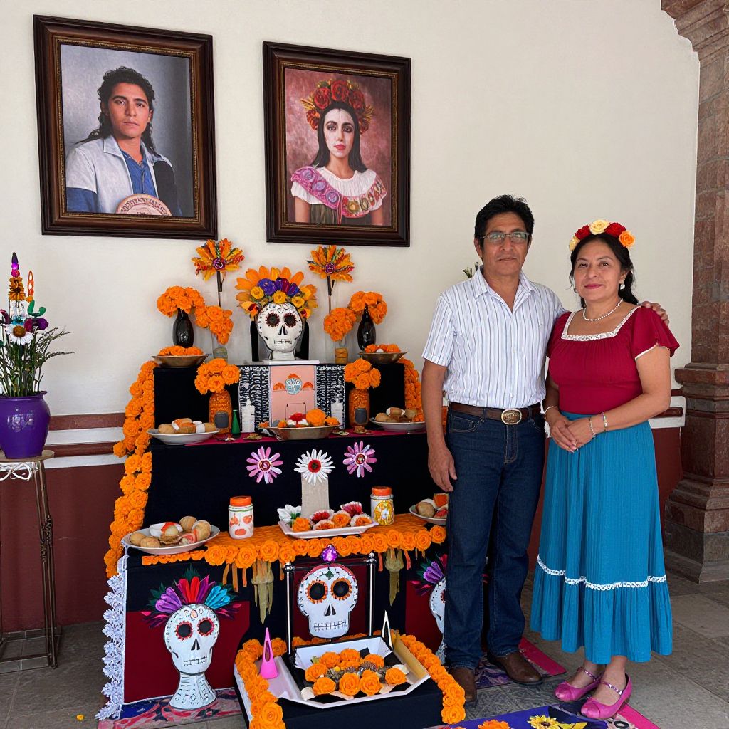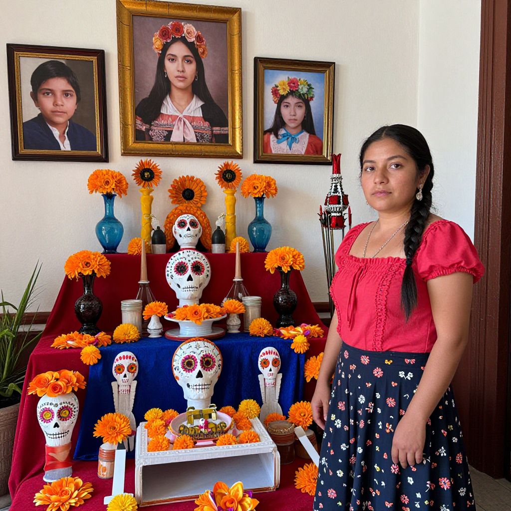 Woman Beside Día de los Muertos Altar