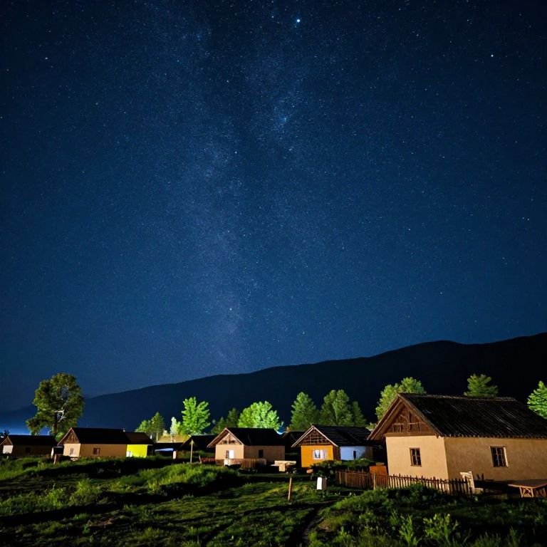 Cuboid The small village is full of fresh and unpretentious atmosphere, with beautiful scenery and fresh air. Beautiful Night, full of shinning stars on the sky, starry sky,