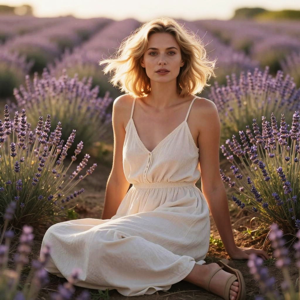 Woman in Golden Wheat Field at Dawn