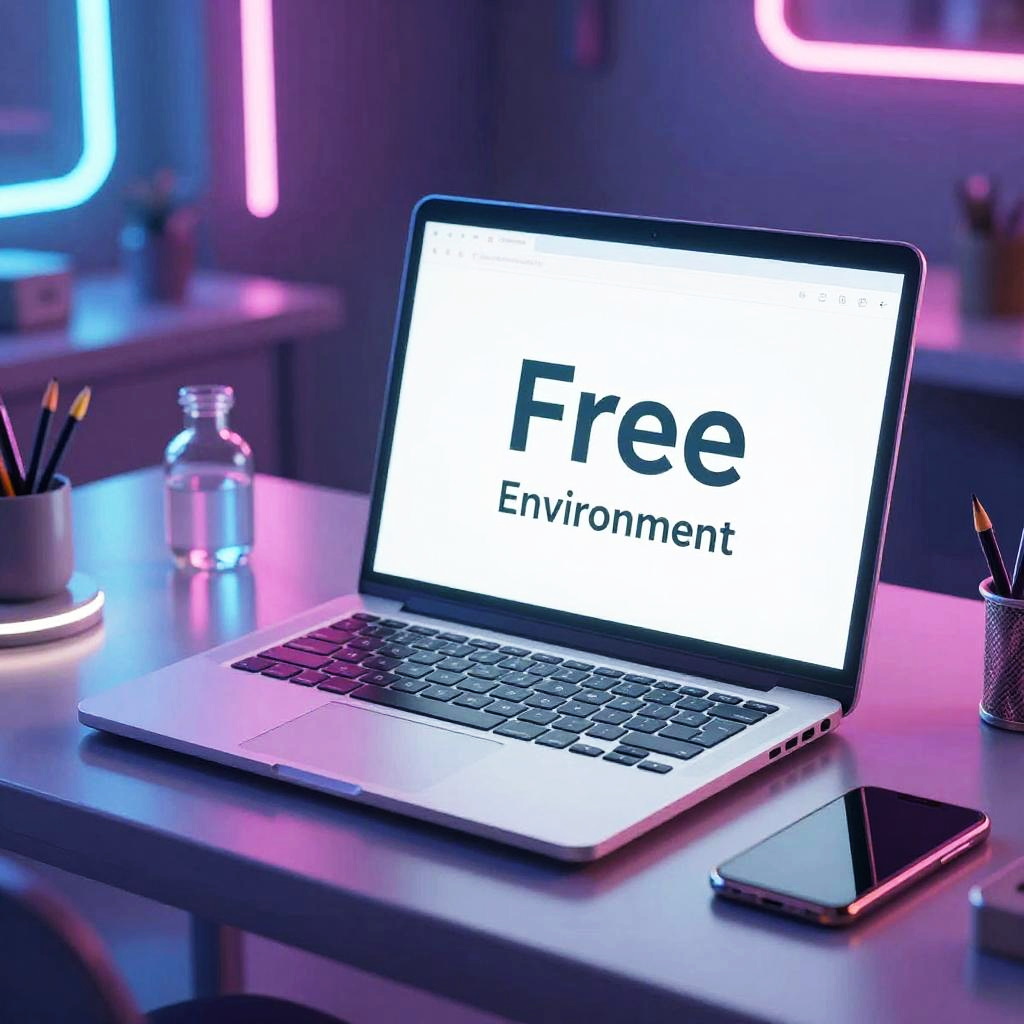 Ai art gen free environment, an open-source AI art generator running on a glowing laptop with a bright creative workspace filled with futuristic art tools, vibrant neon light reflections, cyberpunk aesthetic, high-tech vibe