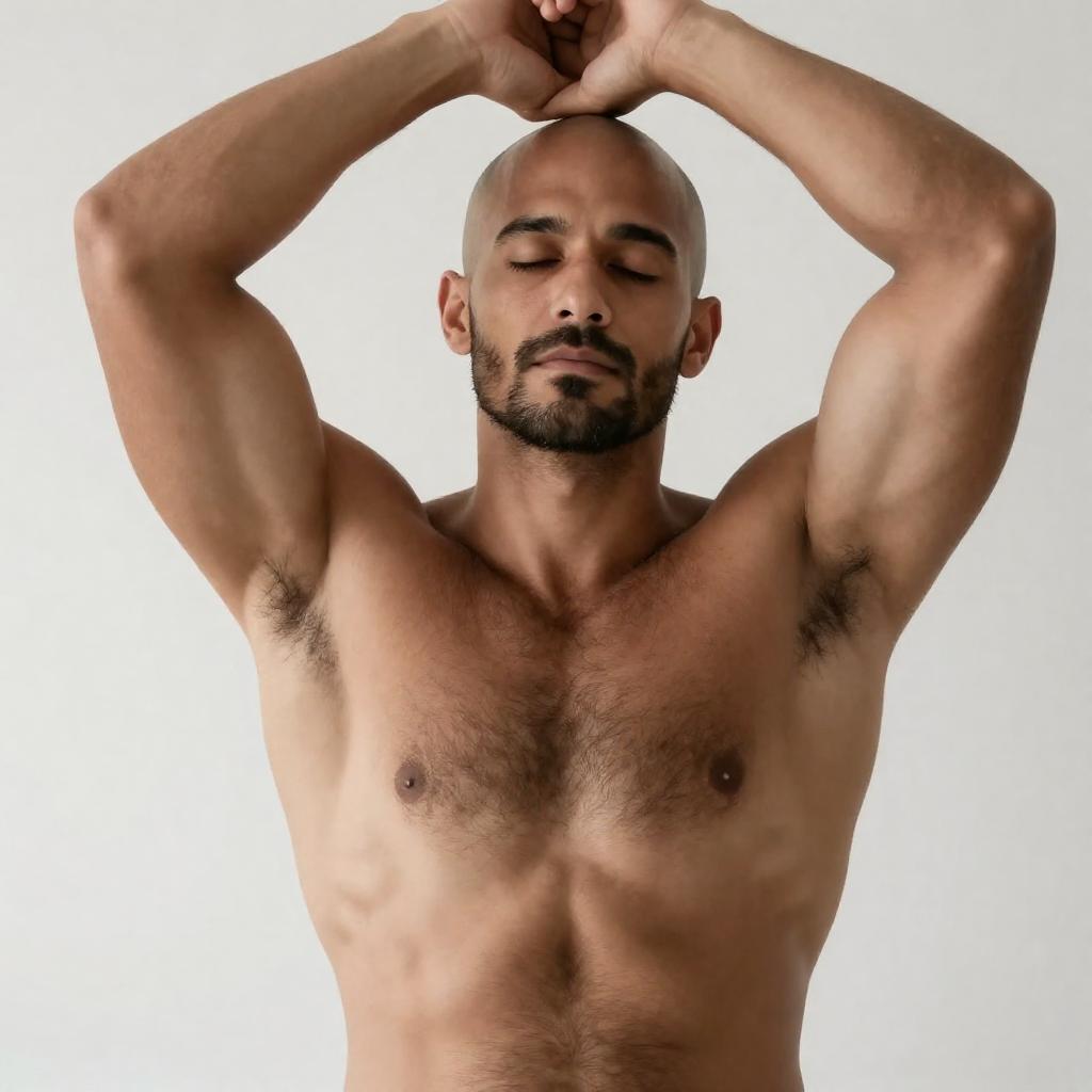 Muscular man with short, curly black hair, wearing a white tank top and white wrist wraps, gripping a vertical rope. Strong arms raised. Background has large window panes with grid patterns. Red vertical pole on the right. Intense expression. Indoor gym setting. Photograph.