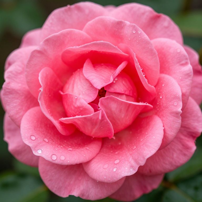 Pink wet rose covered in rain droplets, hyper-realistic close-up, vibrant colors with subtle shadows, natural beauty emphasized in bright daylight
