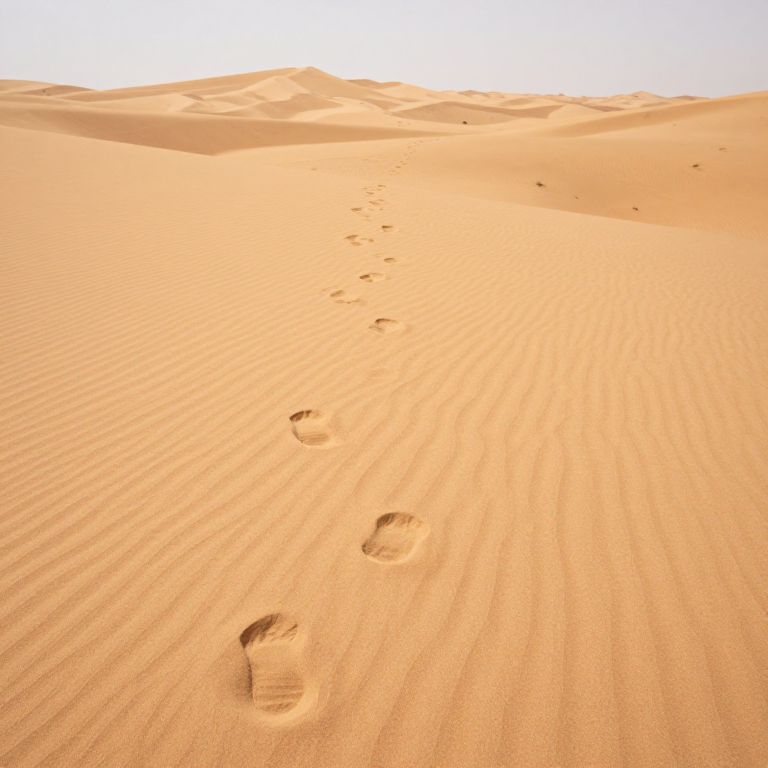In the vast expanse of the desert, a trail of footprints whispers stories of solitude and resilience, each step echoing the rhythm of existence against the silent sands, where the weight of absence transforms into the profound beauty of presence.