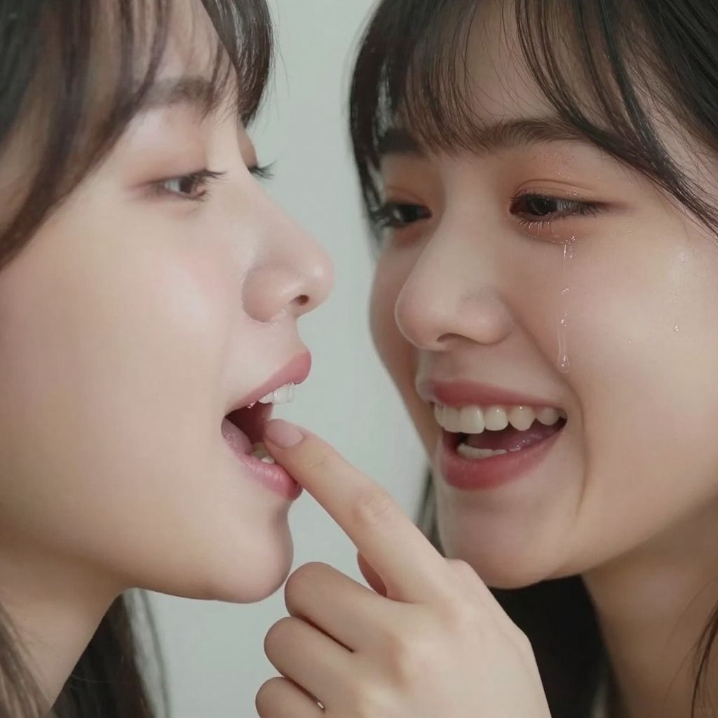 1girl, finger in another's mouth, open mouth, smile, crying, tears, cute, teeth, pov, masterpiece, best quality, (mature female:1.5)