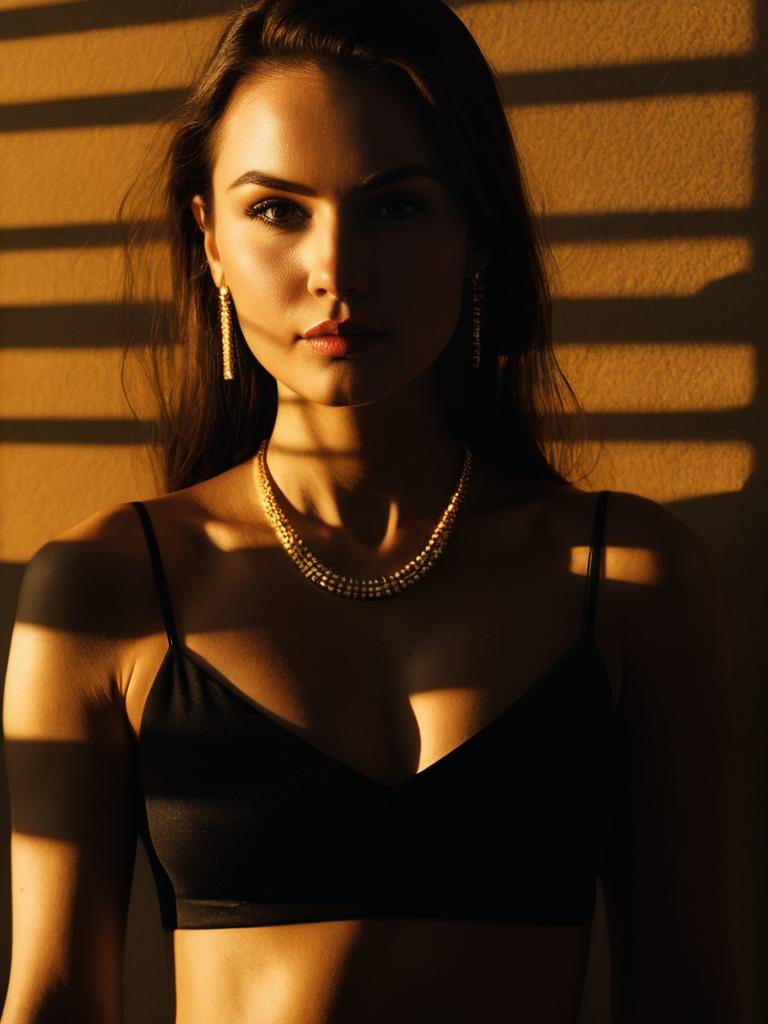 Woman in Navy Blue Sleeveless Dress with Sunlit Shadows