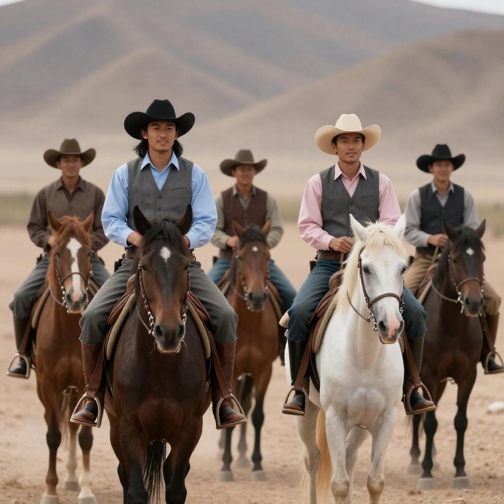 Two Men Horseback Riding in Snowy Mountain Landscape
