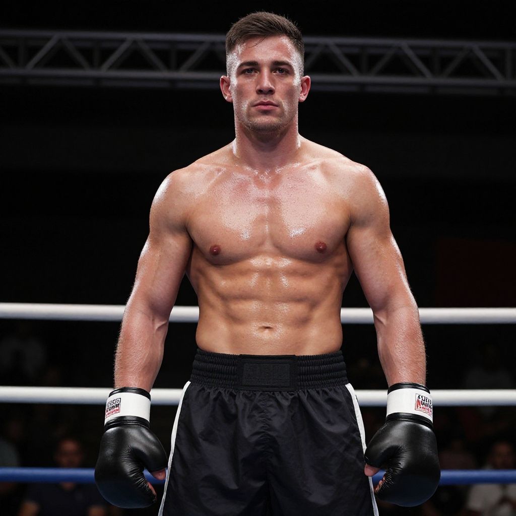 Muscular Fighter in Intense Fighting Stance