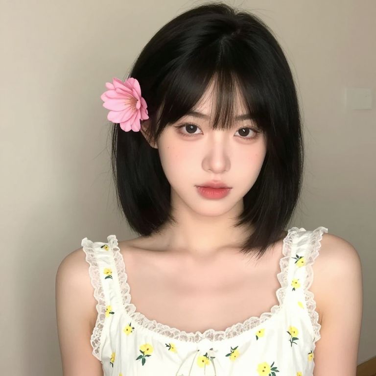 A young girl with long dark hair is wearing a yellow hoodie with a bear ears design on the hoodie.