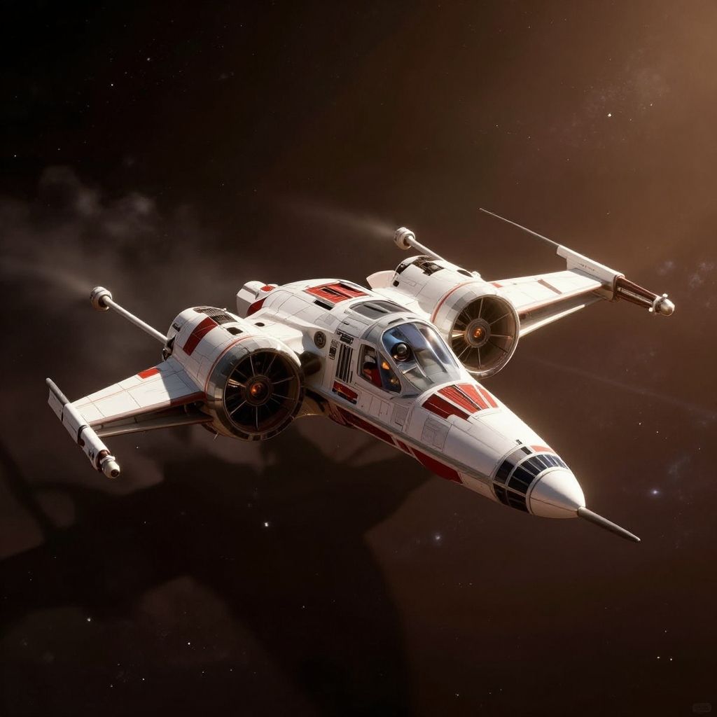 Astonishing scenery from Star Wars picturing a X-wing in the immensity of space, ASCII Masterpiece, (cosy), (ultra high res, mj, best quality, highly detailed:1.5), (cinematic), (volumetric lighting, volumetric shadows:1.5), Amazing, (8k details), (photorealistic:1.4), warm lighting, ray tracing, dynamic lighting:1.5, details intricate, hyperrealistic photography, 8K