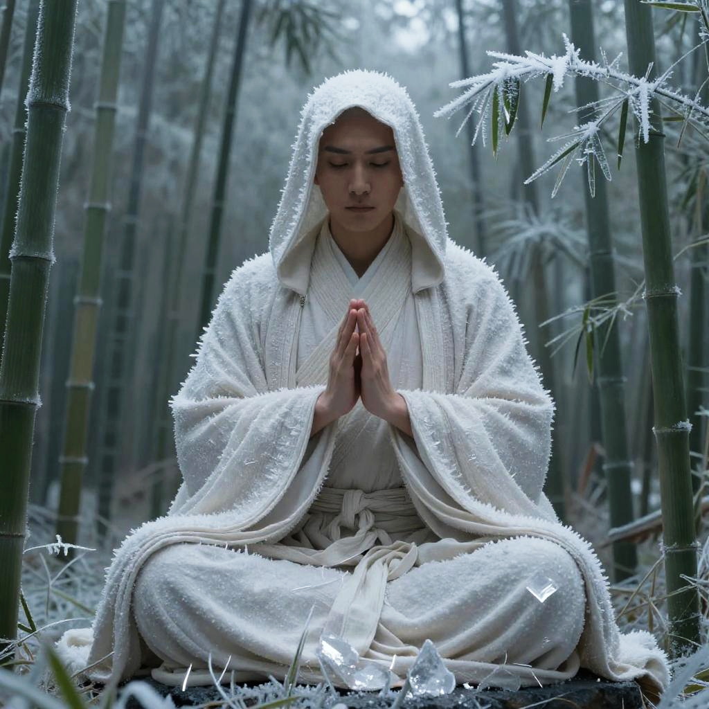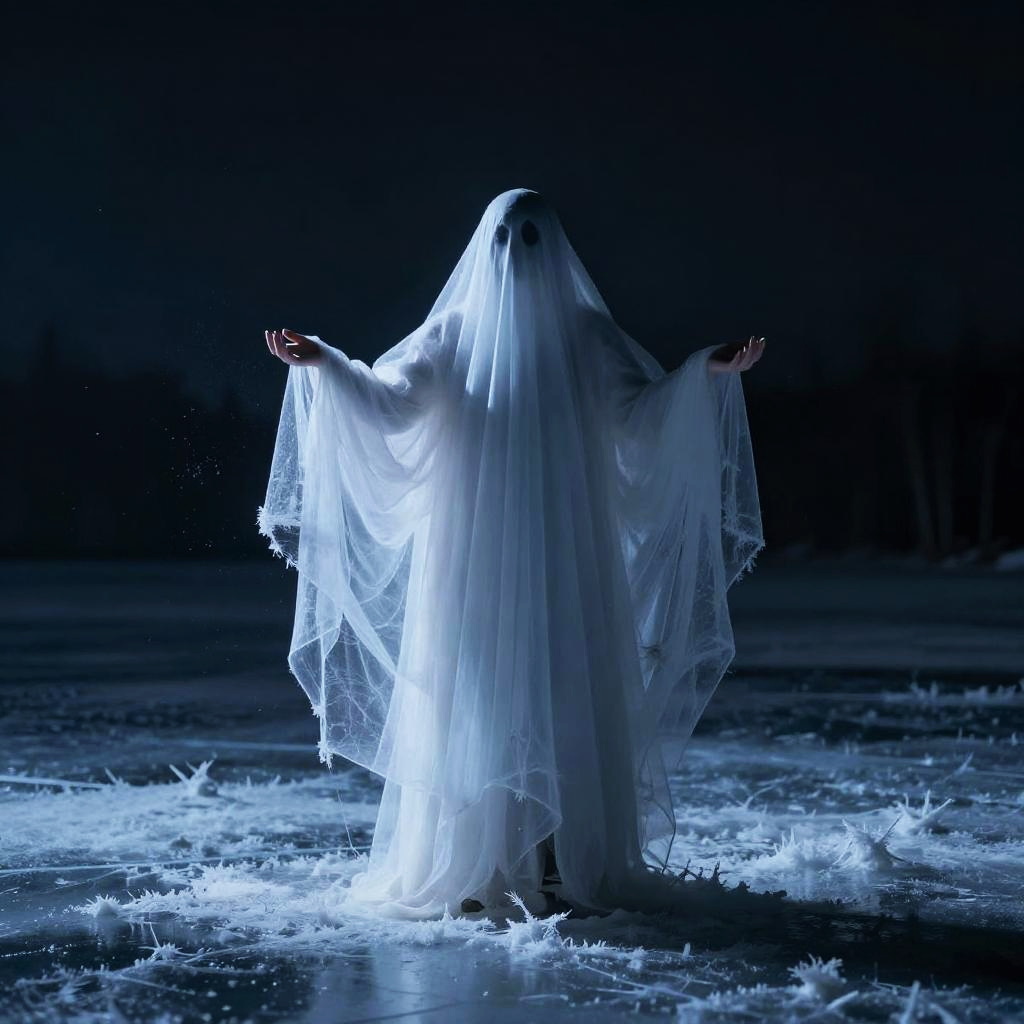 Mysterious Hooded Figure in Snowy Moonlight