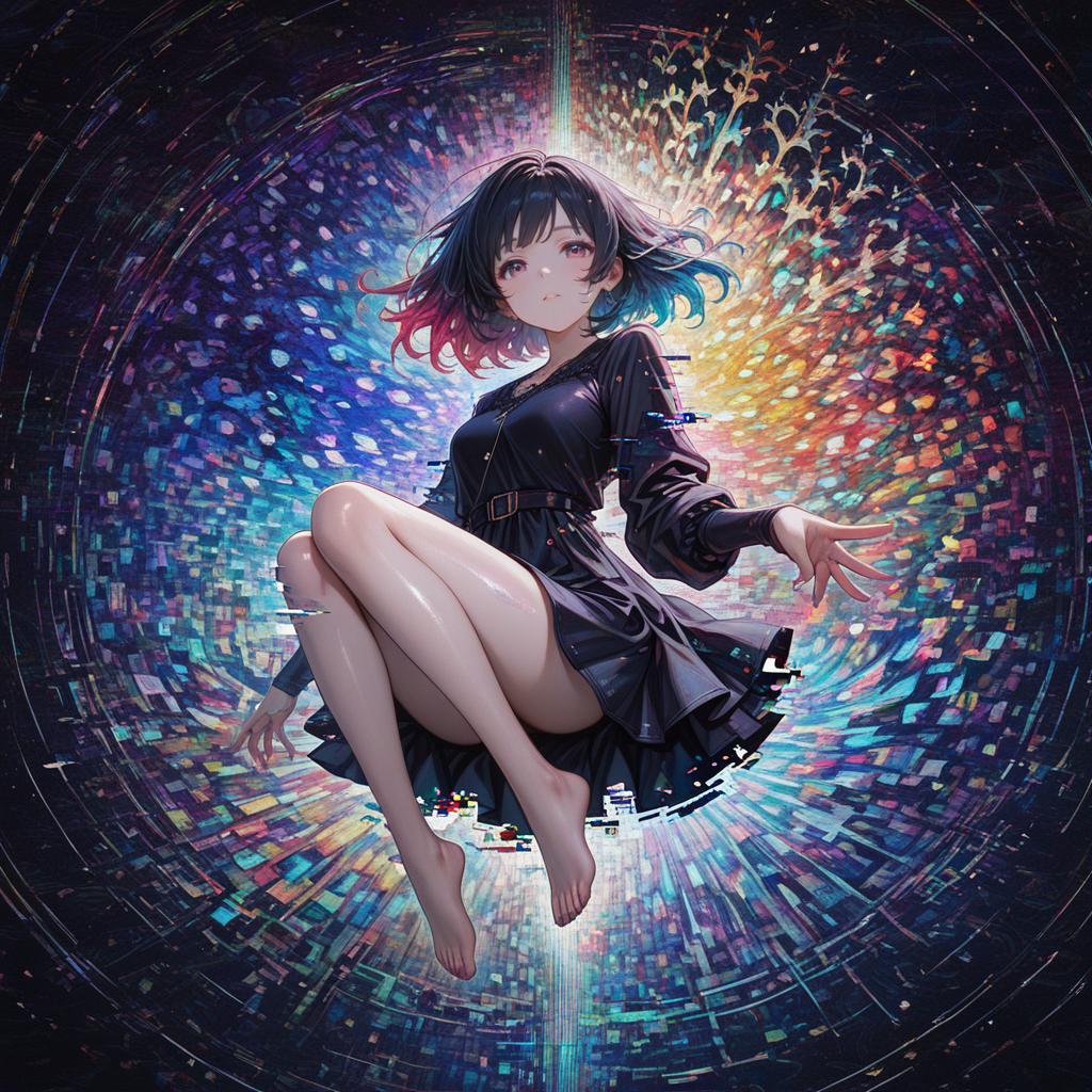(masterpiece, top quality, best quality, official art, beautiful and aesthetic:1.2), (1girl:1.3), extremely detailed, (fractal art:1.2), colorful, highest detailed, (zentangle:1.2), (dynamic pose), (abstract background:1.5), (shiny skin), (many colors:1.4), flowers, acid colors, (lsd:1.5), (glitch:1.5), PsyAI