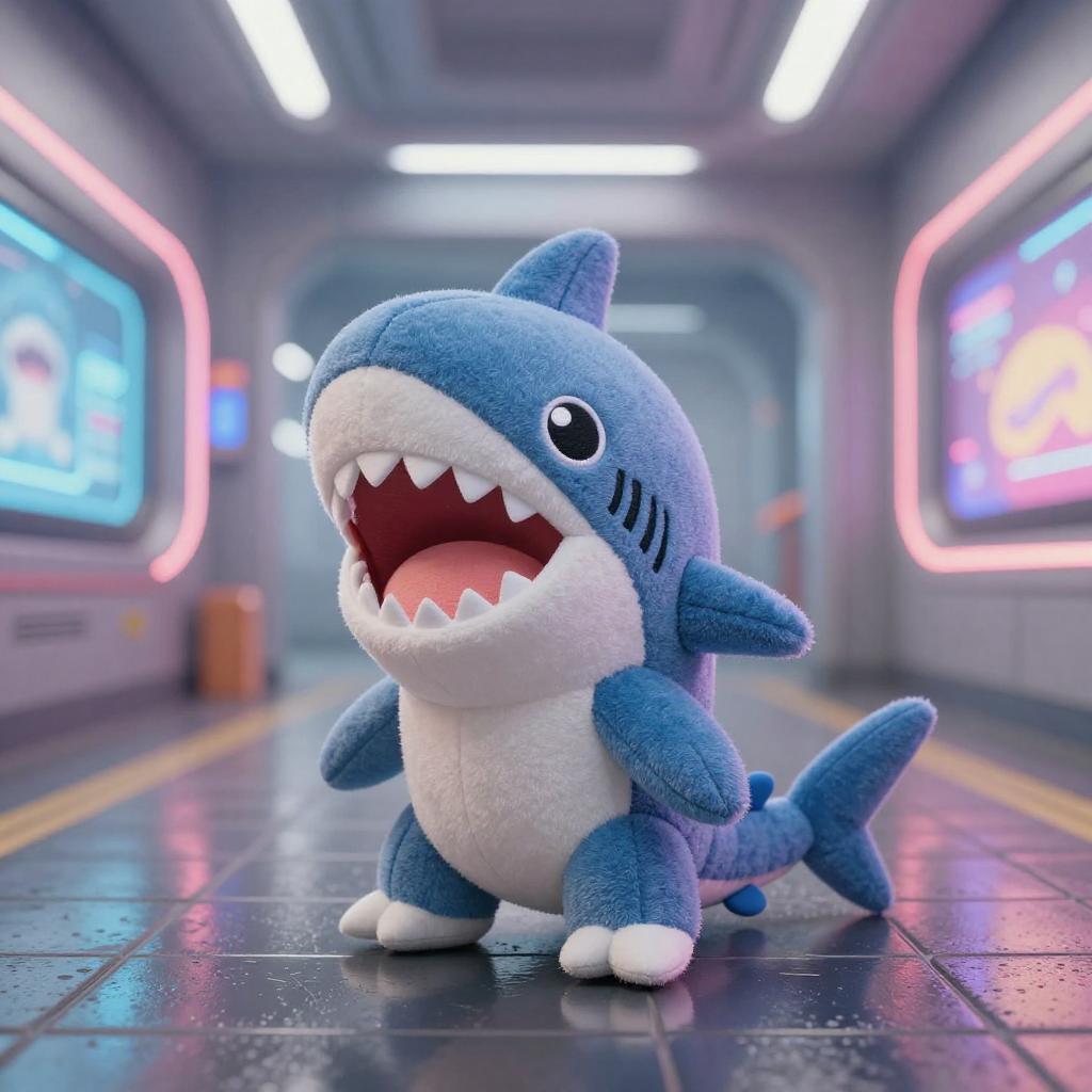 Chibi Shark-Lizard Plush in Futuristic Subway