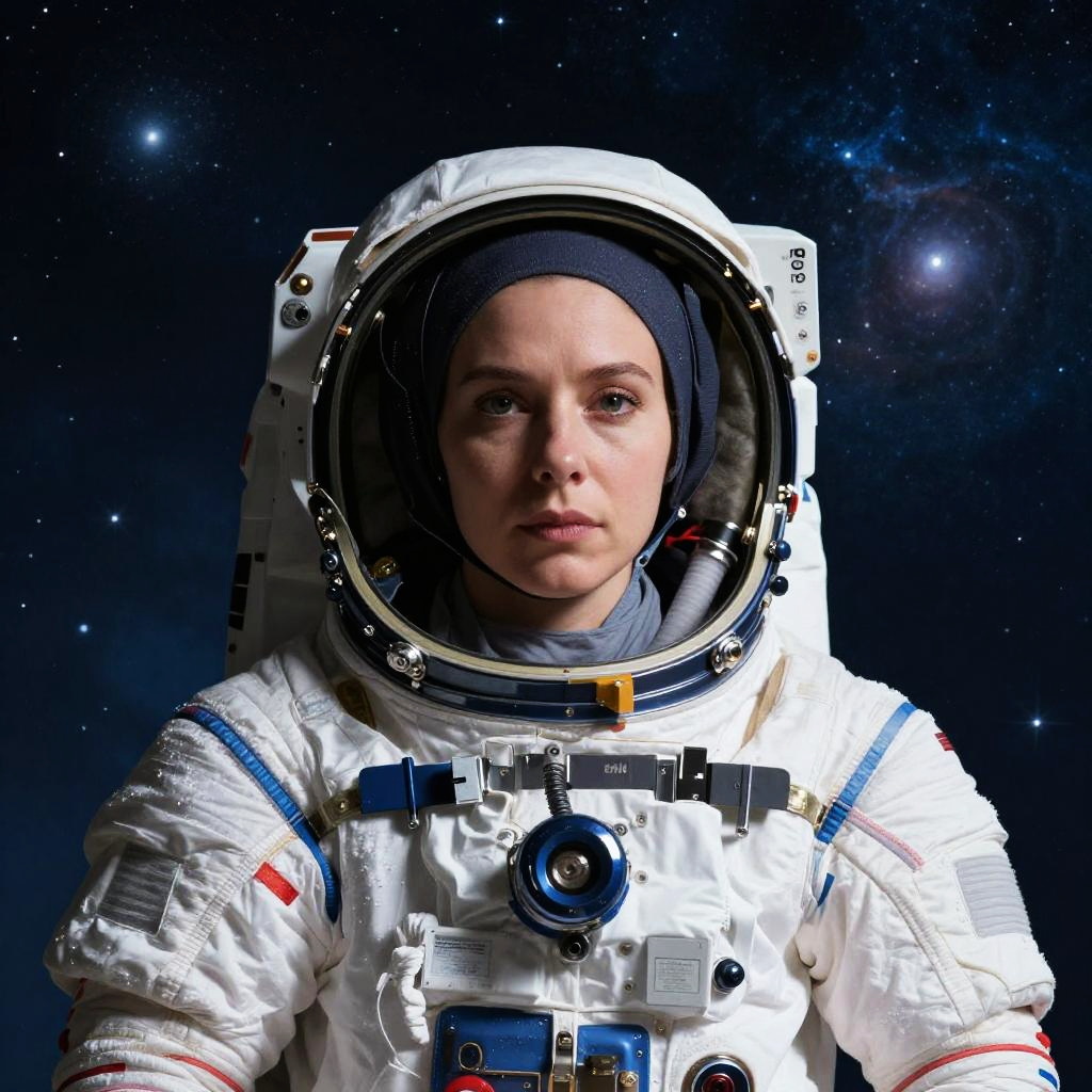 Portrait of Female Astronaut in Space