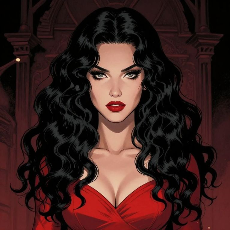 Artgerm, joshua middleton comic cover art, pretty alyson hannigan, evil dead demon, evil dead movie, red dress, symmetrical eyes, symmetrical face, long curly black hair, cinematic lighting