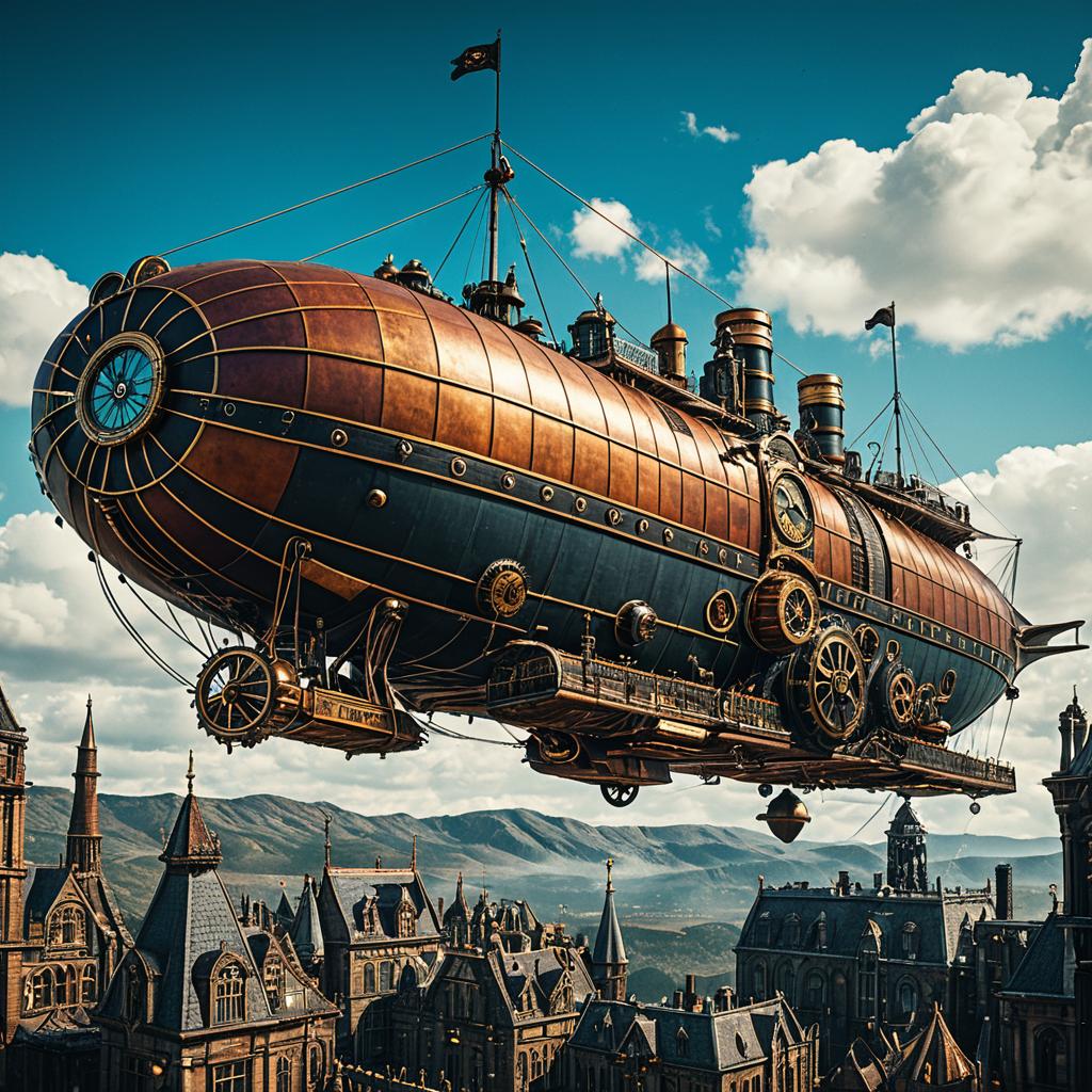 Steampunk Airship, concept art, detailed face, industrial skyline, highly detailed, cinematic lighting, digital art painting by Chippy