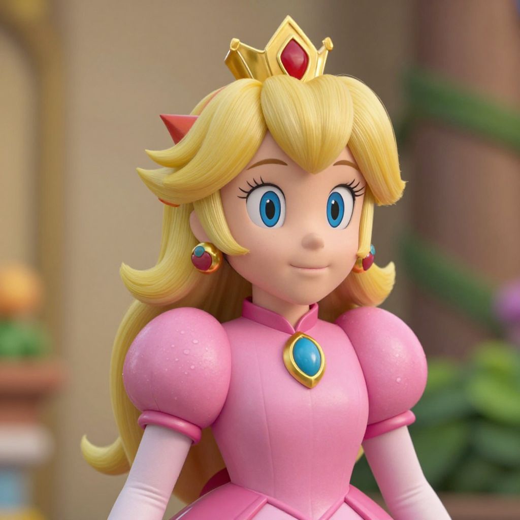 Woman Princess Peach, a close up of a woman wearing a tiable and a dress