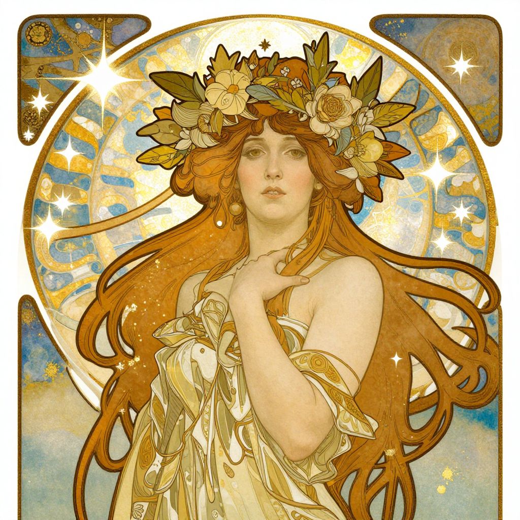 Celestial Art Nouveau Woman in Ink