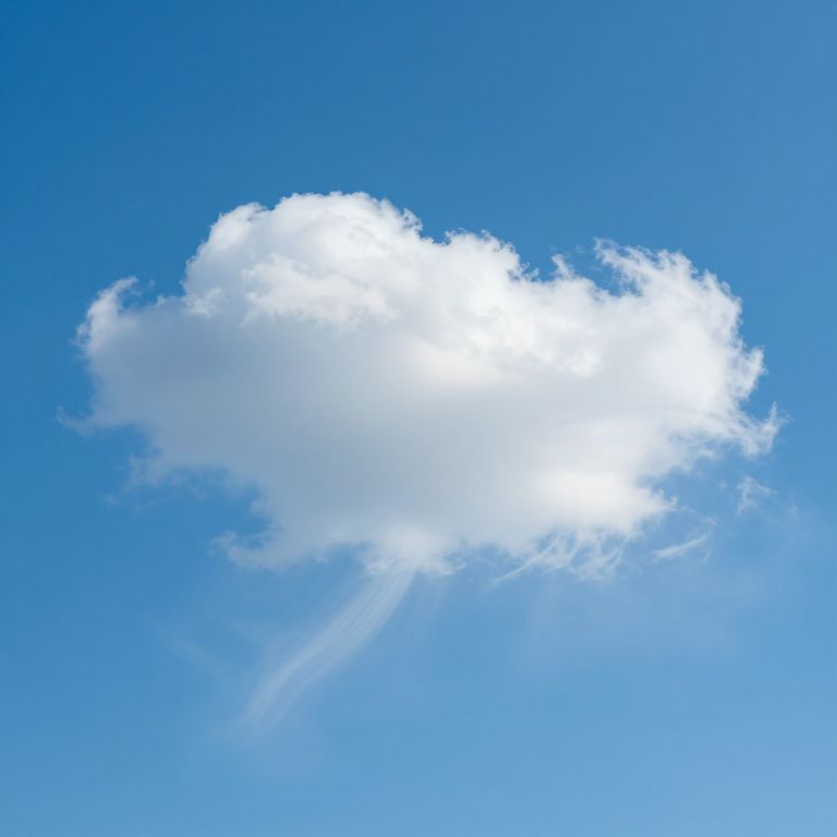 Amidst a serene azure expanse, a colossal cloud whispers stories of collective dreams, casting soft shadows and releasing ethereal wisps that dance with the wind, embodying the transient beauty of shared imagination.