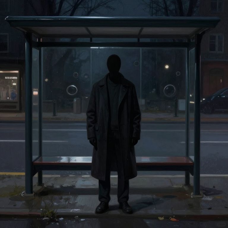 Haunting Realism: Headless Figure at Bus Stop