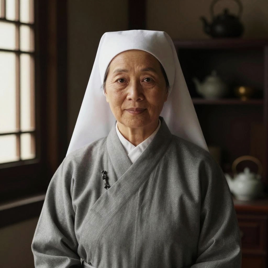 Portrait of Asian Nun in Tradition