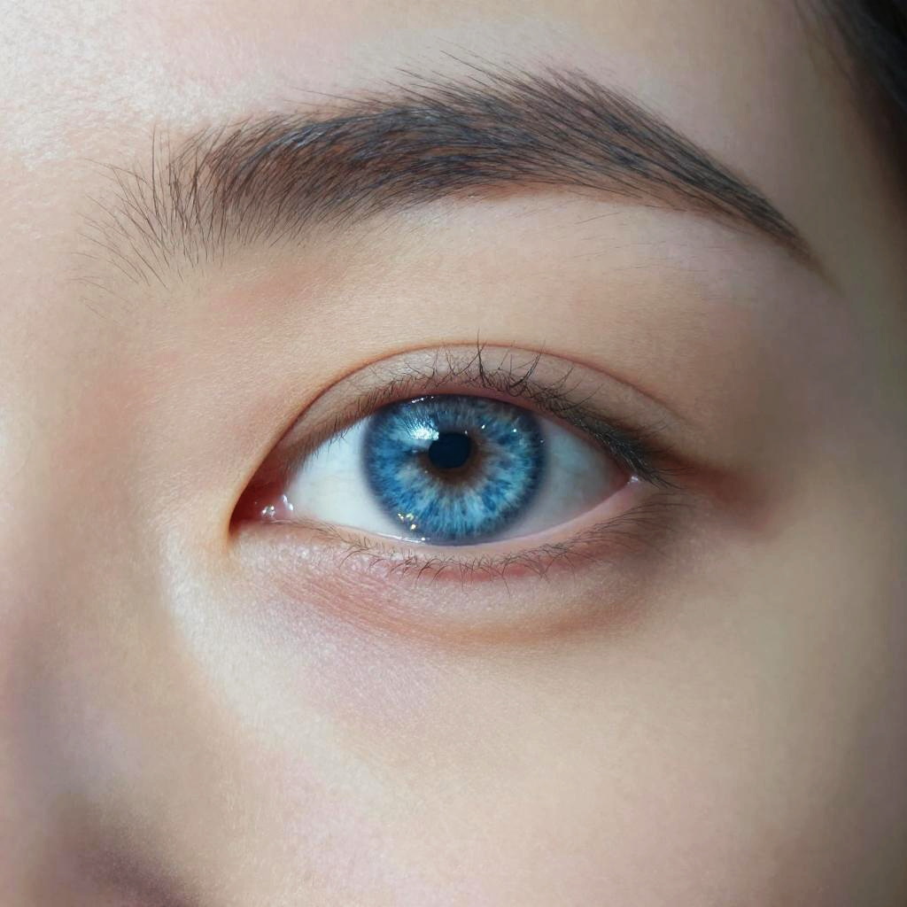Ocean blue eyes sparkling under sunlight, close-up portrait of a person with deep, mesmerizing sea-colored irises, soft waves reflected in the pupils, dreamy and serene mood