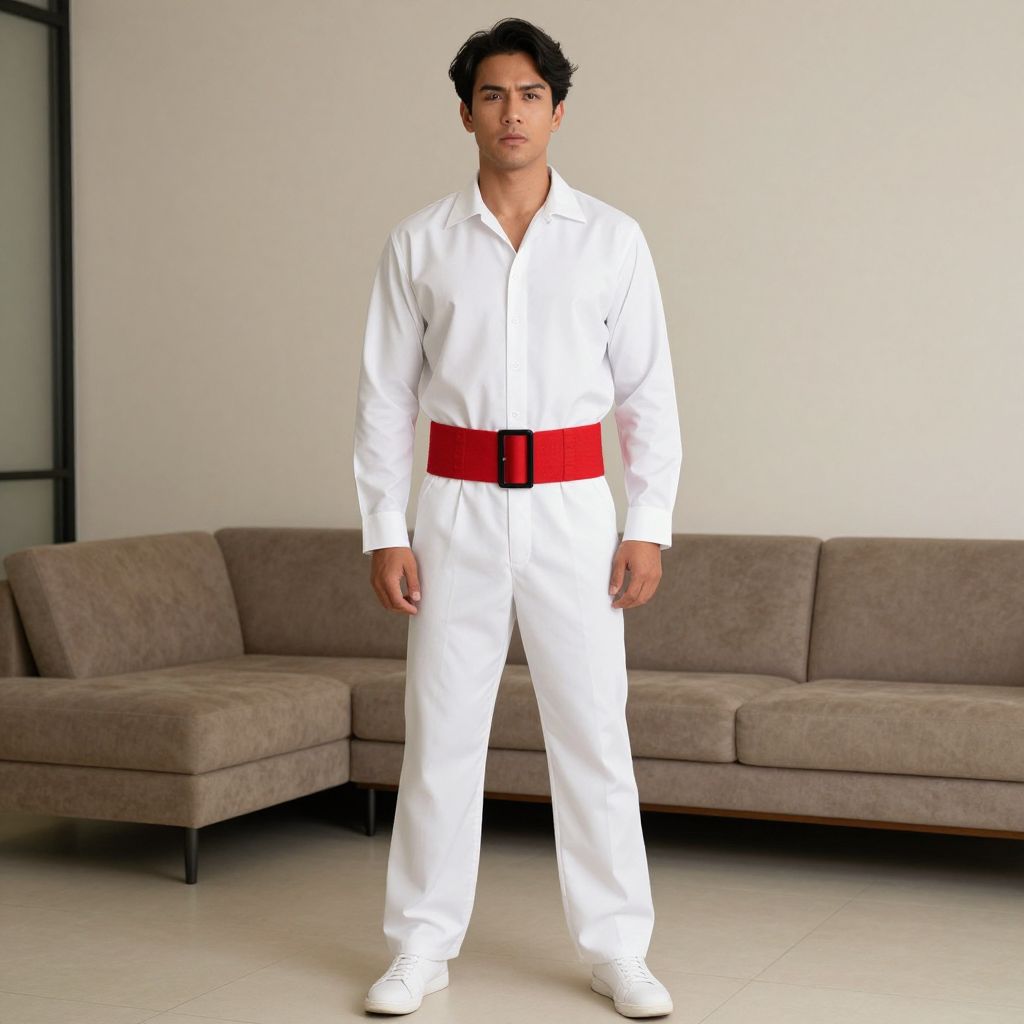 Piece Outfit Costume, man in a white shirt and red belt standing in a room