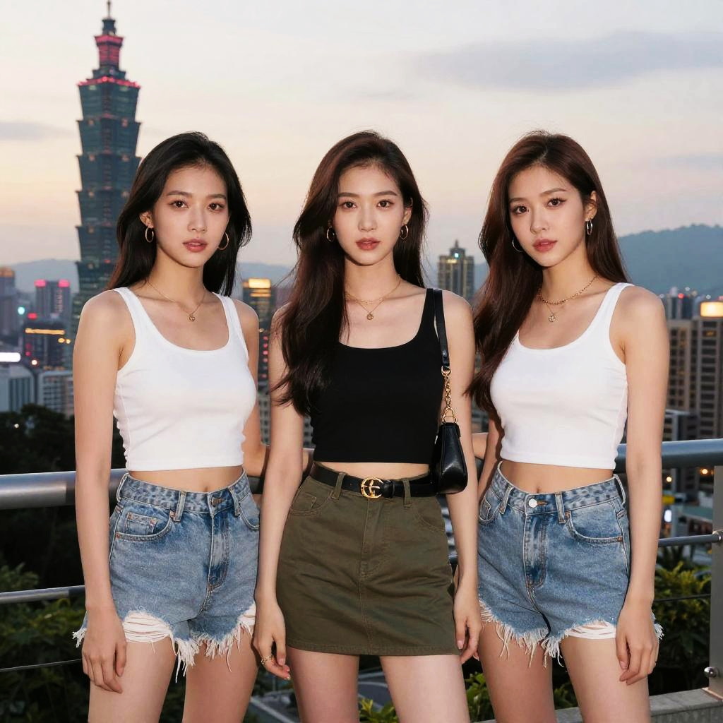 Stylish Taiwanese Women at Taipei Sunset