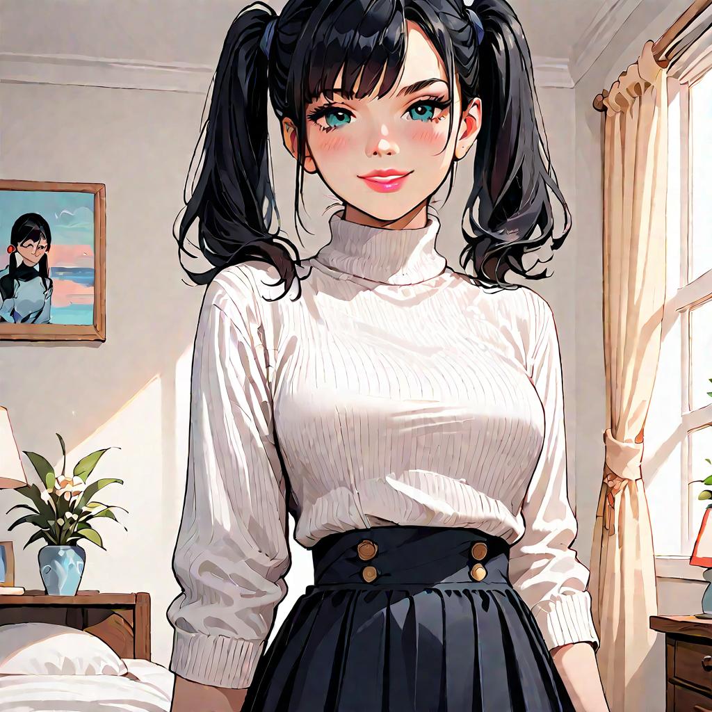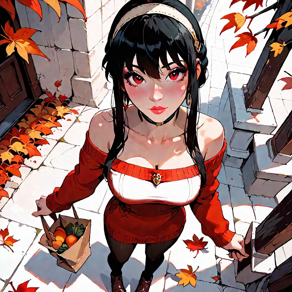Dynamic Anime Girl in Off-Shoulder Sweater