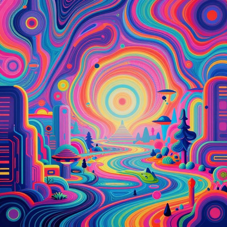 Dalle AI art concept showcasing a futuristic digital canvas filled with vibrant, abstract patterns and surreal landscapes, blending technology and creativity in a cyberpunk style, rendered in bright neon colors with intricate details and depth.