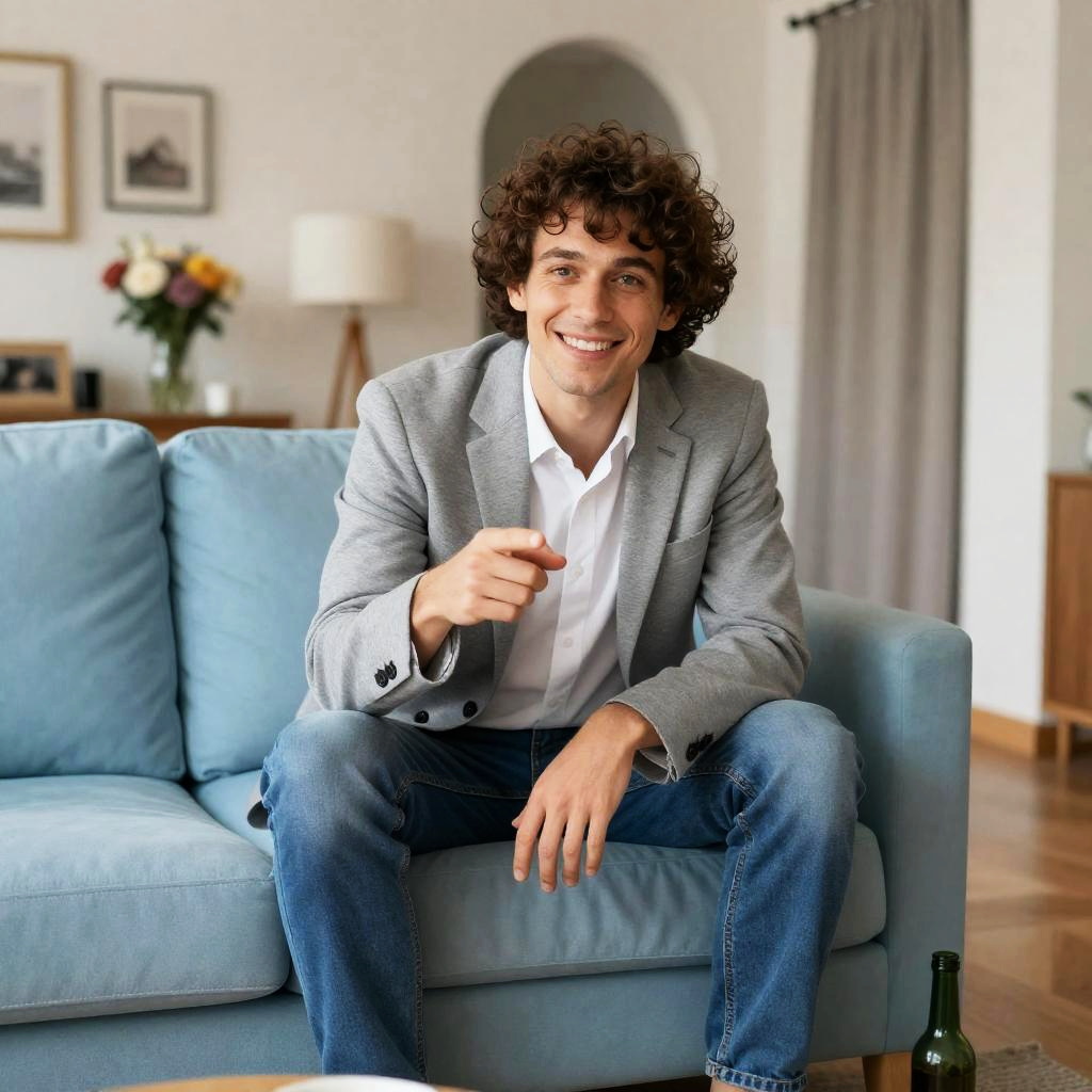 Bearded Man with Cookies in Cozy Room