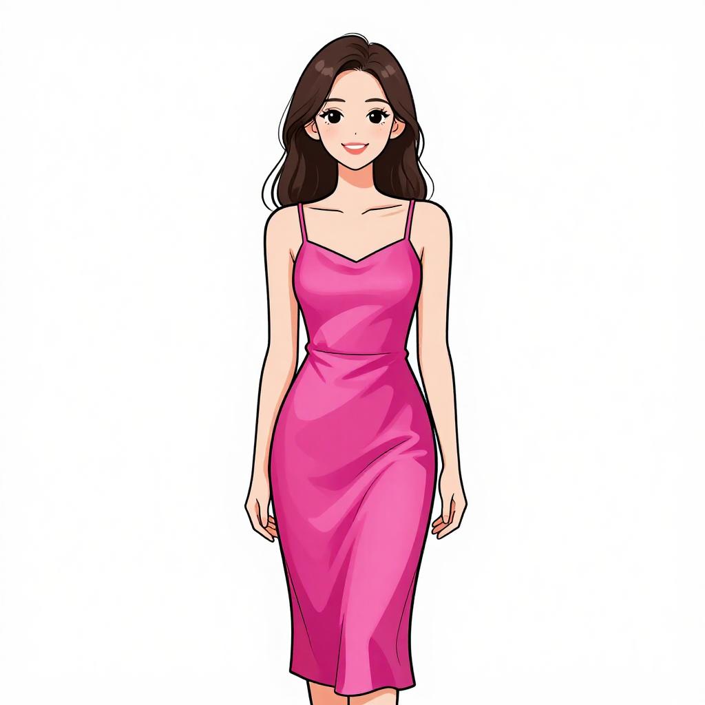 This digital line drawing features a minimalist portrait of a young woman with closed eyes and a serene expression. She has short, slightly wavy hair drawn with simple, smooth lines. Her eyelashes are long and prominent, and her lips are slightly parted with a gentle pink hue. The outline of her face, neck, and shoulders is defined with thin, pinkish lines, while the background is entirely white, emphasizing the simplicity and elegance of the illustration. The style is clean and modern, focusing on minimalistic detail.
