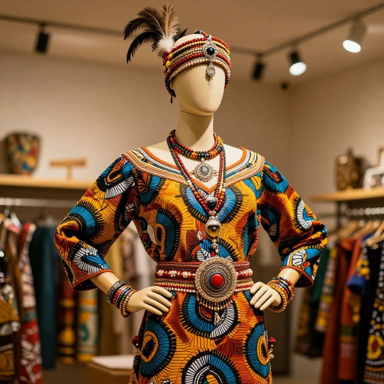 Mannequin with Vibrant Headdress and Jewelry