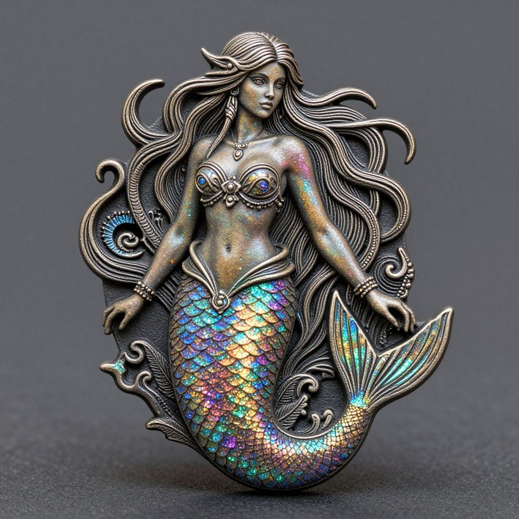 Line art trinket depicting a Mermaid - Legendary aquatic creature with the upper body of a human and the tail of a fish. Elisa Breton, natural, shimmering, vibrant, gothic, rpg, 1400ad, ultra detailed, detailed, immersive, reminiscent of high fantasy RPG games, HD, masterpiece, best quality, hyper detailed, super realistic, perfect face, perfect hands, award-winning, professional, breathtaking, linquiveraamazing Cavernwet weatherethereal fantasy concept art of . magnificent, celestial, ethereal, painterly, epic, majestic, magical, fantasy art, cover art