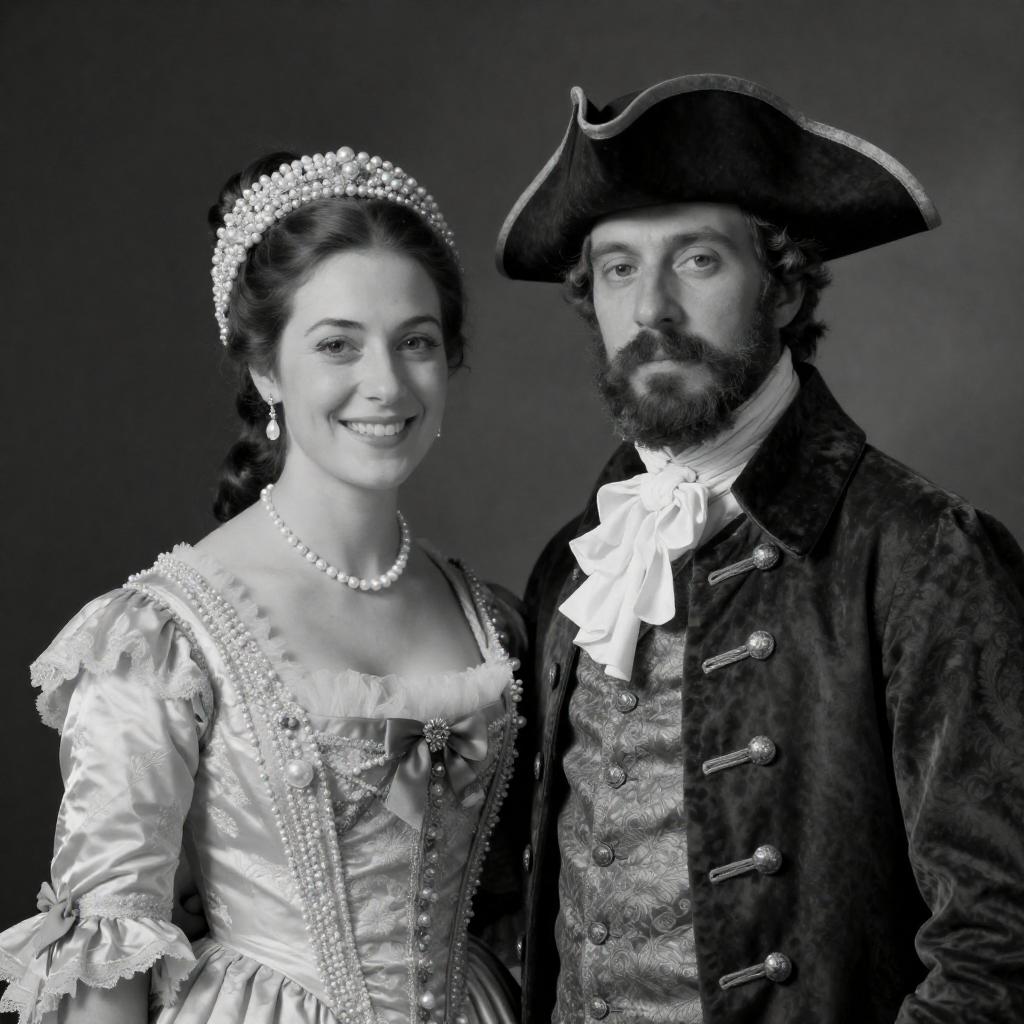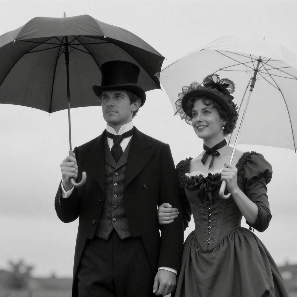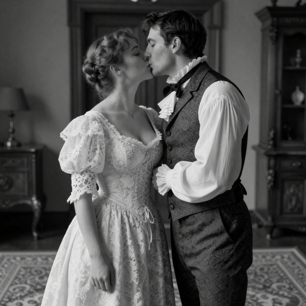 Victorian Couple in Elegant Black and White