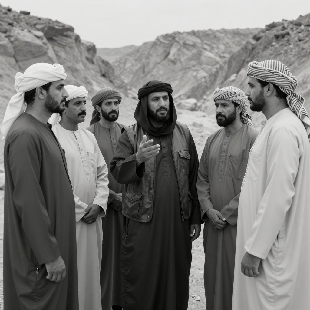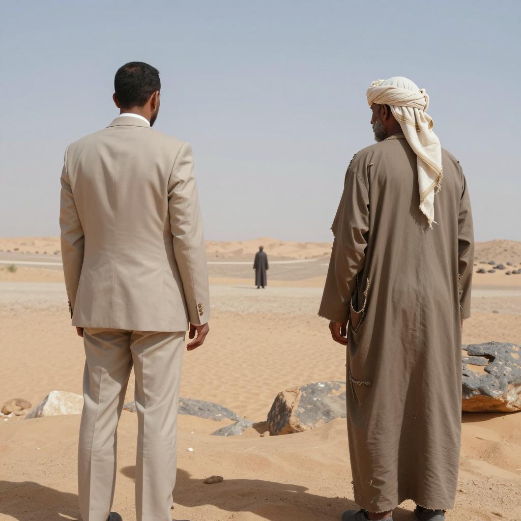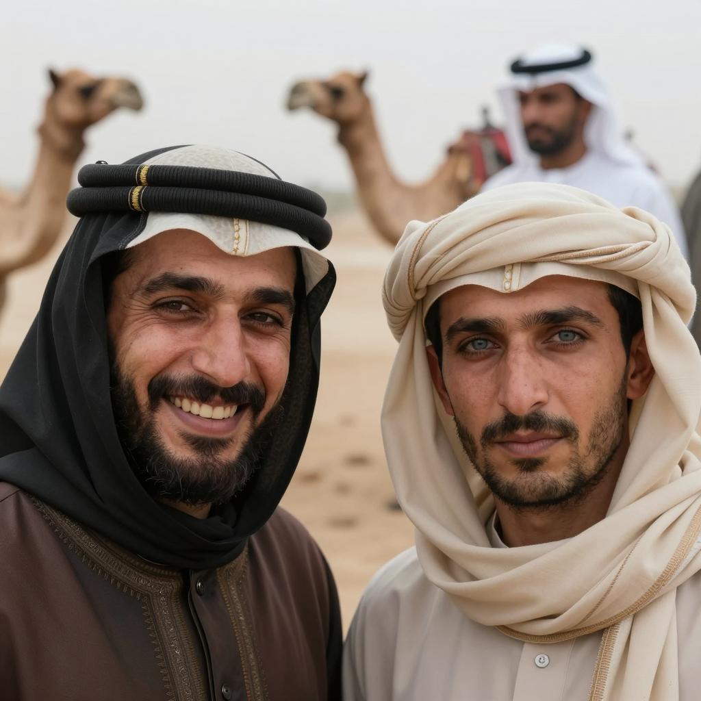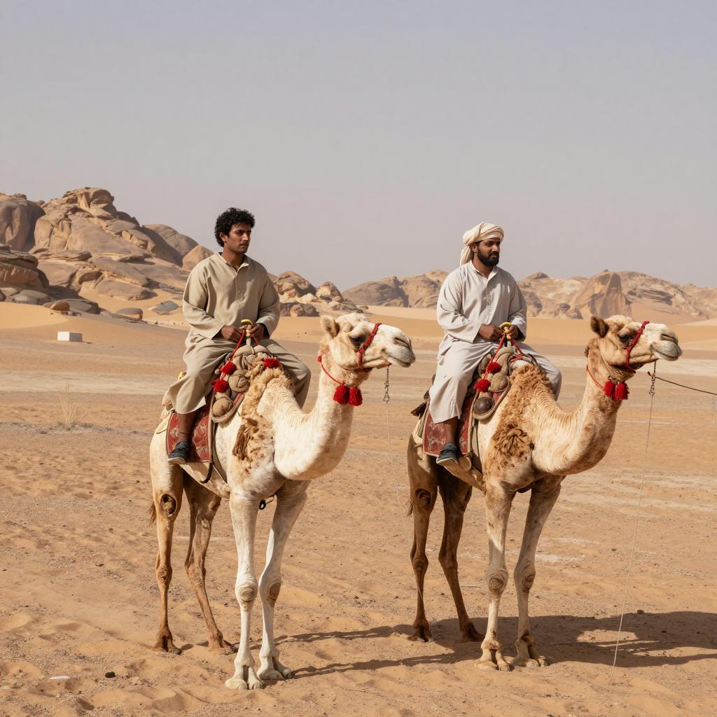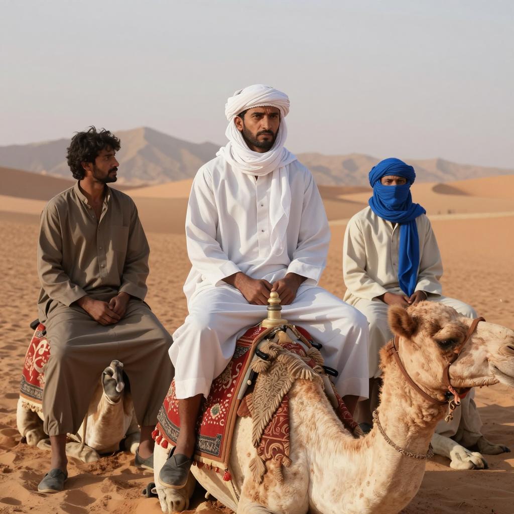 Vibrant Desert Scene with Traditional Men