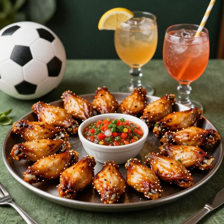 Footaball party platter with wings, salsa, and cocktail winers