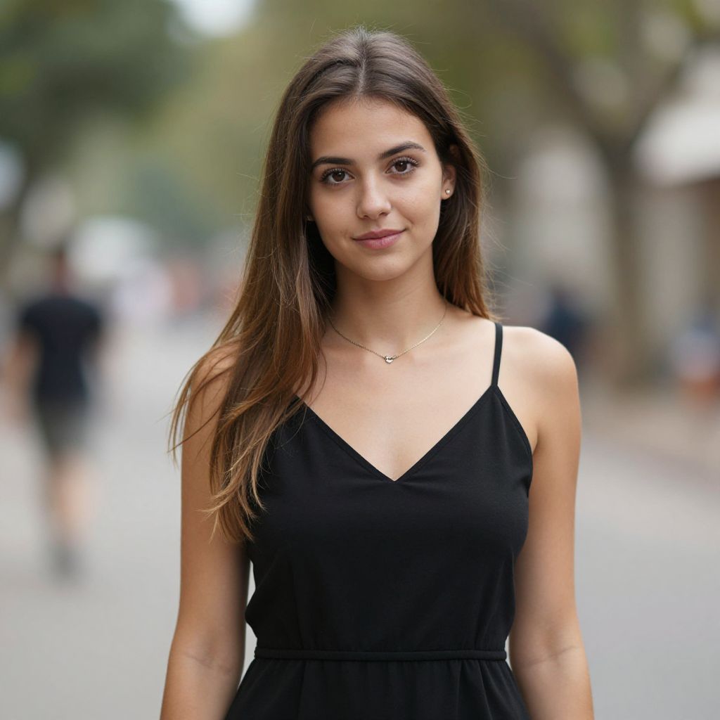 "good partner costume, 1girl, solo, long hair, realistic, scarf, lips, jewelry, brown hair, shirt, jacket, earrings, looking at viewer, black hair, hands in pockets Realistic photo of casual sexy person with pretty face"