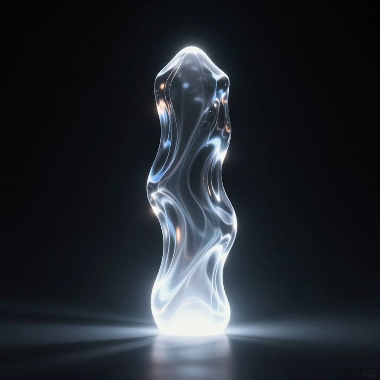 A luminous, undulating monolith of liquid light and shadow emerges from its base, defying gravity and material form, as if solidified from the ethereal dance of sound and energy.
