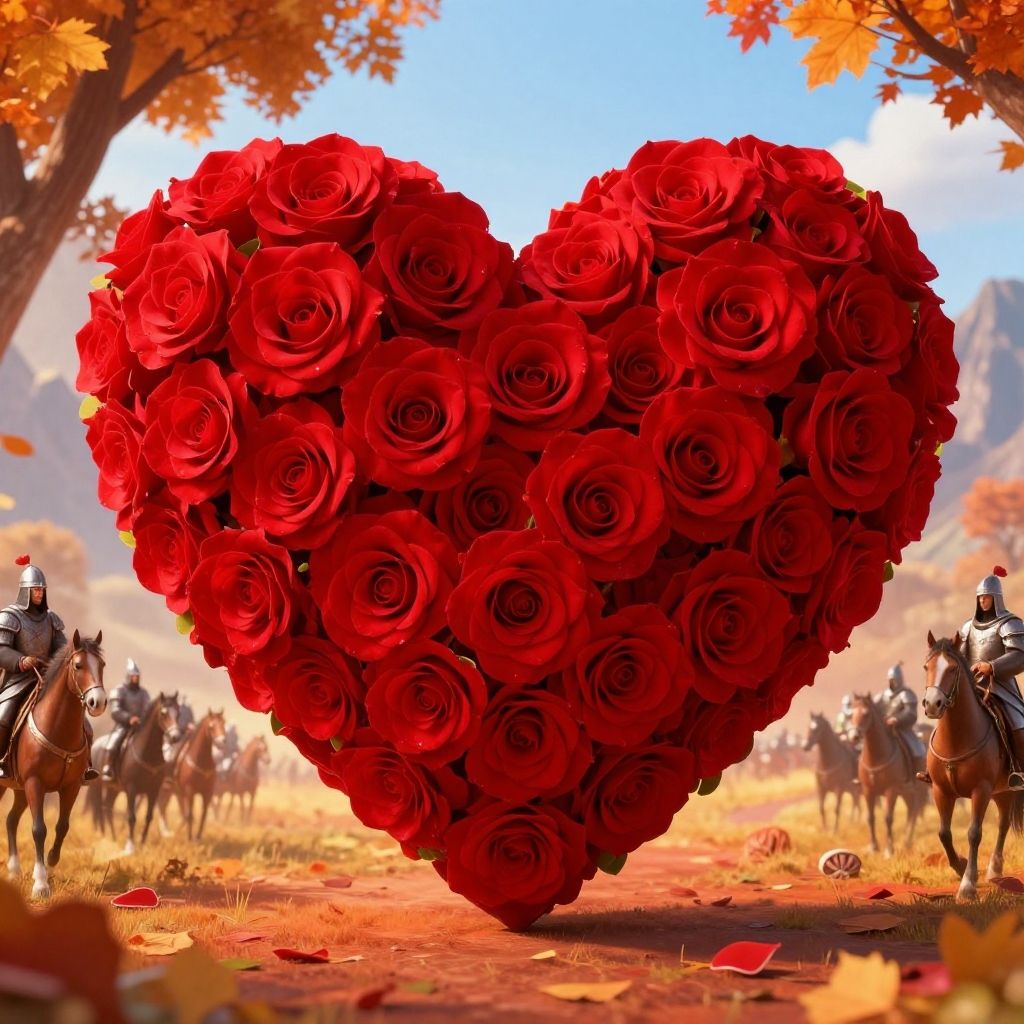 Breathtaking, realistic, best quality, masterpiece, autumn, box, flower, food, gradient background, heart, red flower, rose, tree, valentinesday, hearts theme, valentines day style, love, colorfull, Fantasy picture of highly detailed Barbarians soldiers on horseback, mountain in the background, on a beautiful bright summer afternoon, lighting, shiny, . award-winning, professional, highly detailed