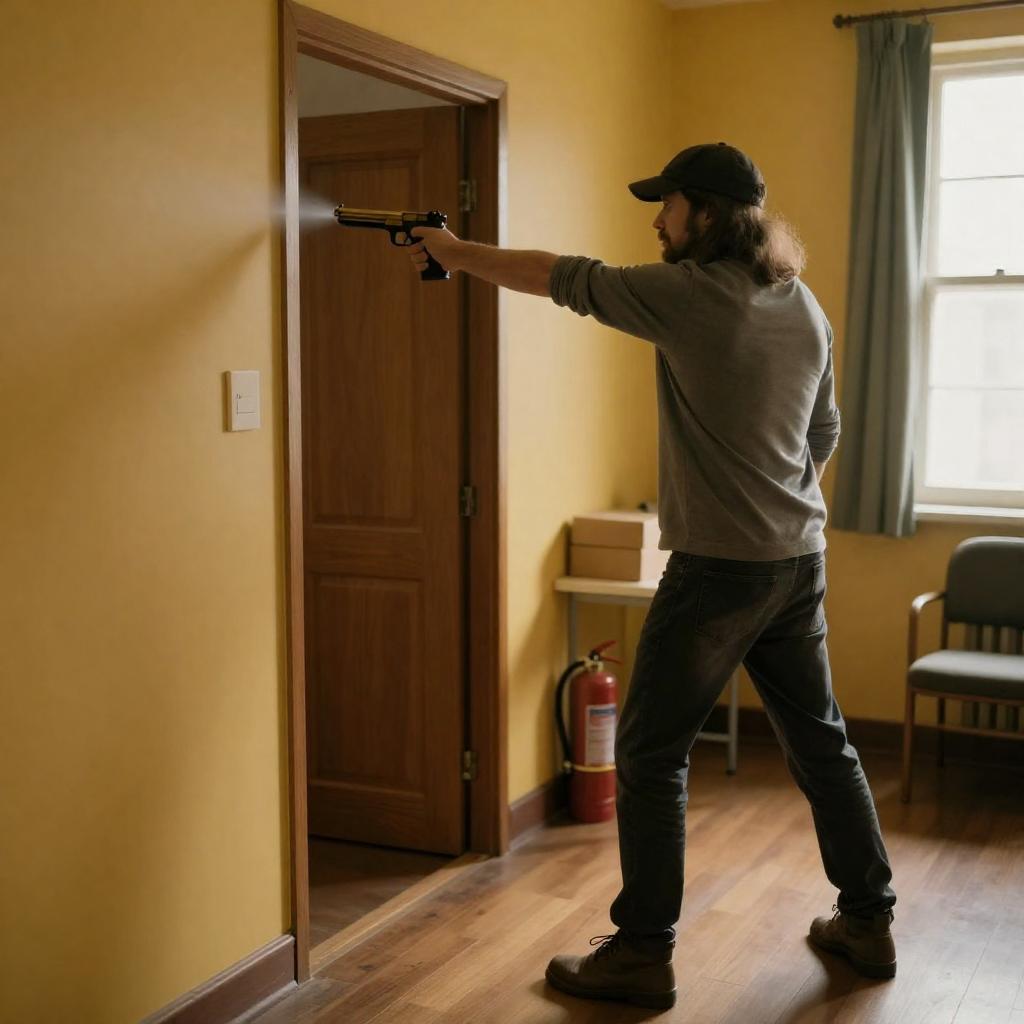Intense Rooftop Vigilante in Cityscape