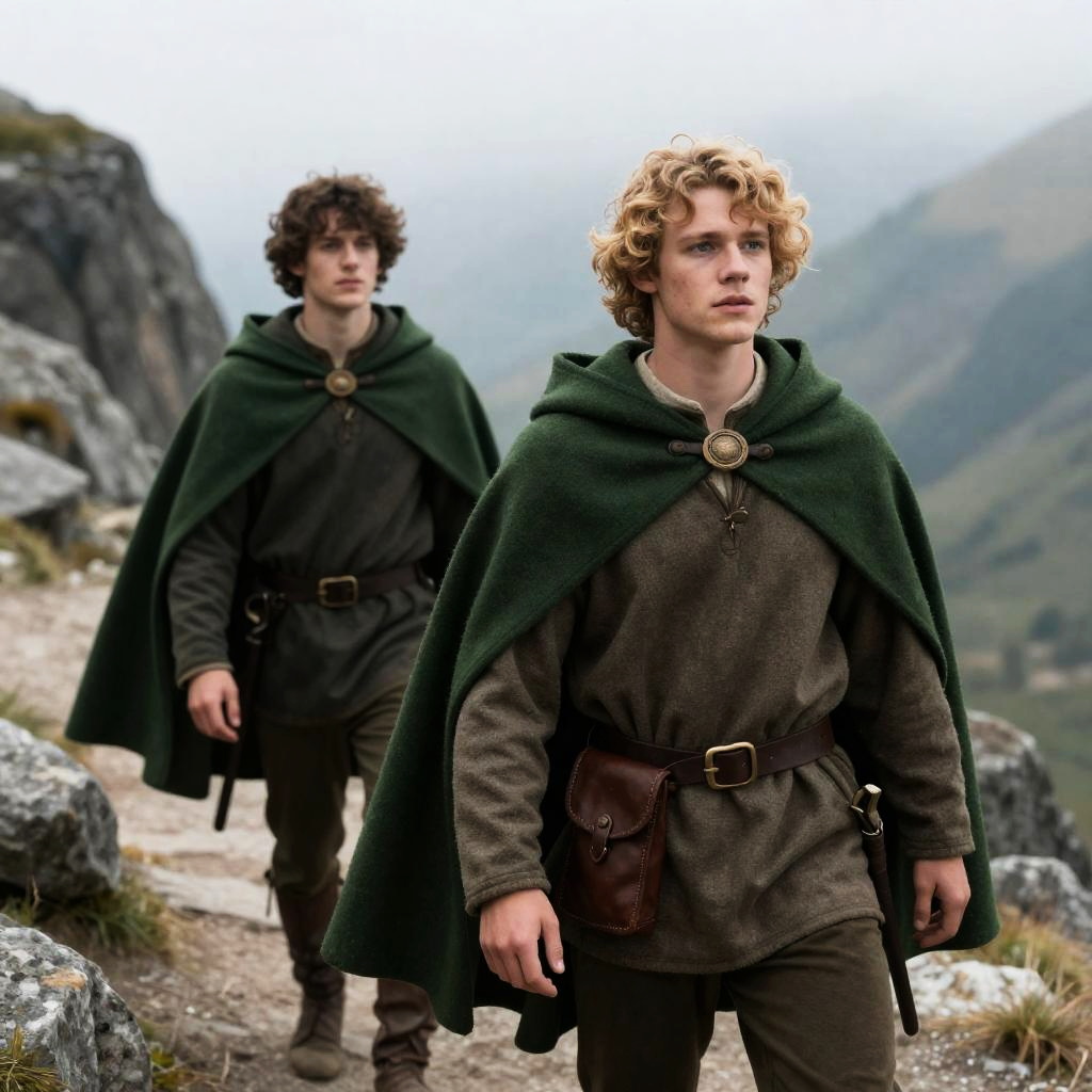 A young man with curly hair wearing rustic, historical-style clothing holds an illuminated vintage lantern. He stands near a rocky coastline at dusk, with dark stormy clouds and waves in the background, creating a moody and adventurous atmosphere.