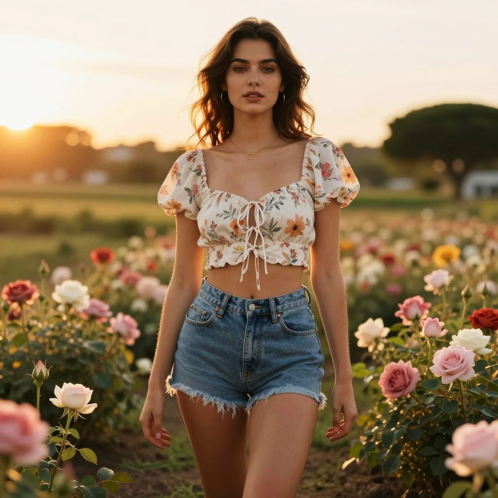 Highres, masterpiece, perfect lighting, bloom, cinematic lighting, adult, perfect skin, female, ((cowboy shot)), Butt out pose, smile, narrow waist, skinny, Zelda, ball gown, choker, detailed eyes, blue eyes, sensual, rose garden with morning dew, pink lips, ((glossy lips)), pumps, glossy skin, oily skin, beautiful light, (day:1.3), bright