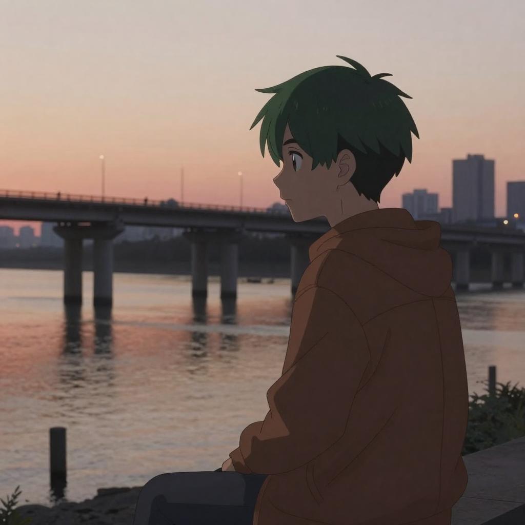 Sunset Anime Couple with Bicycle