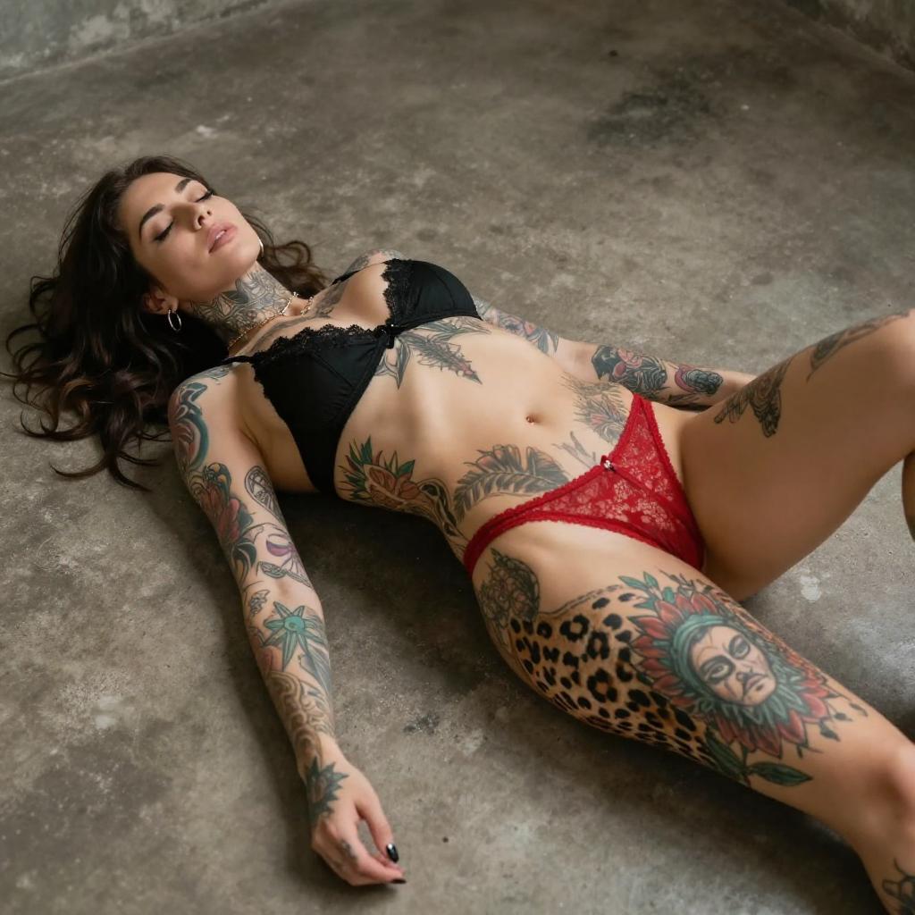 Tattooed Asian Woman in Lingerie