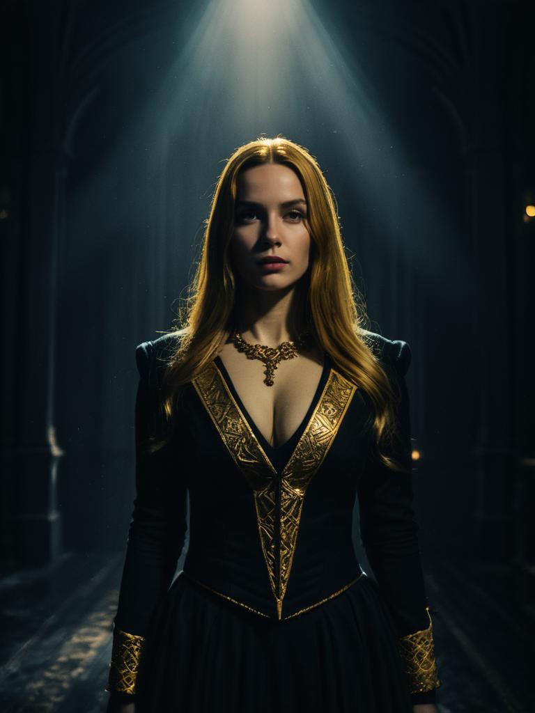 Sexy cosplay woman character wearing Madam Red (Angelina Durless) costume. Realistic photo. Jane Doe dressed as Madam Red (Angelina Durless) --sref 1391