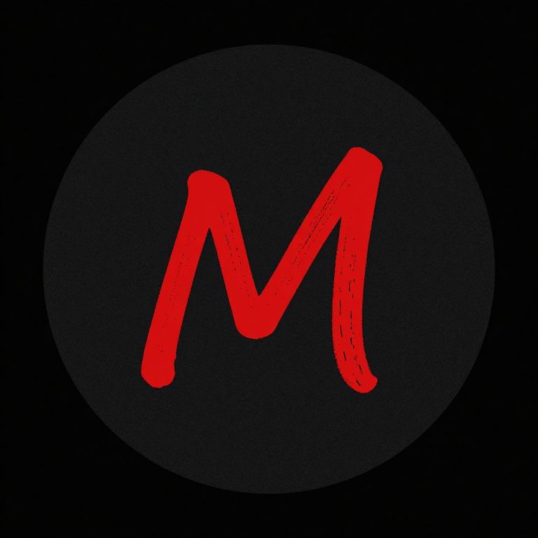 Bad Trip profile picture for social media, in a circular shape on a matte black background, with a red letter M, in the style of a hand-made signature,