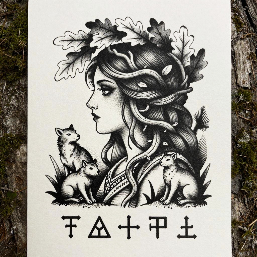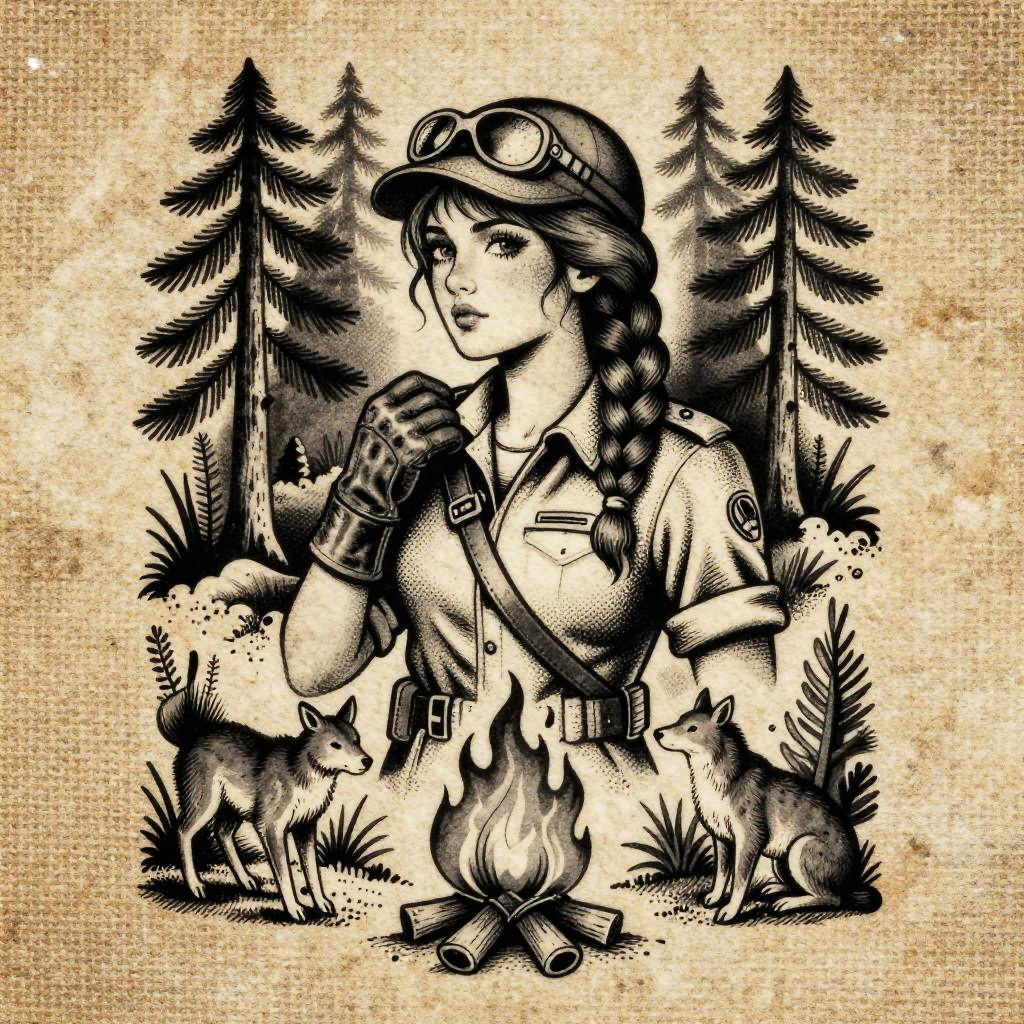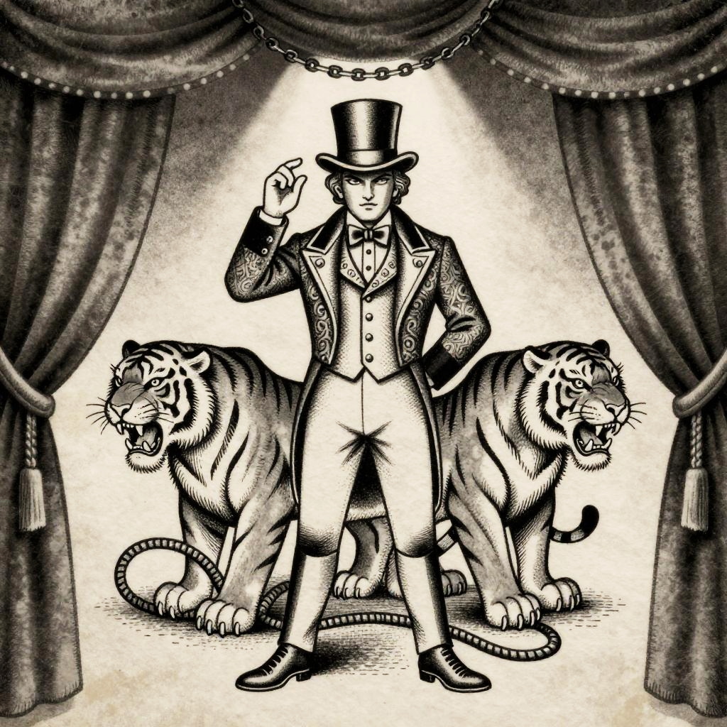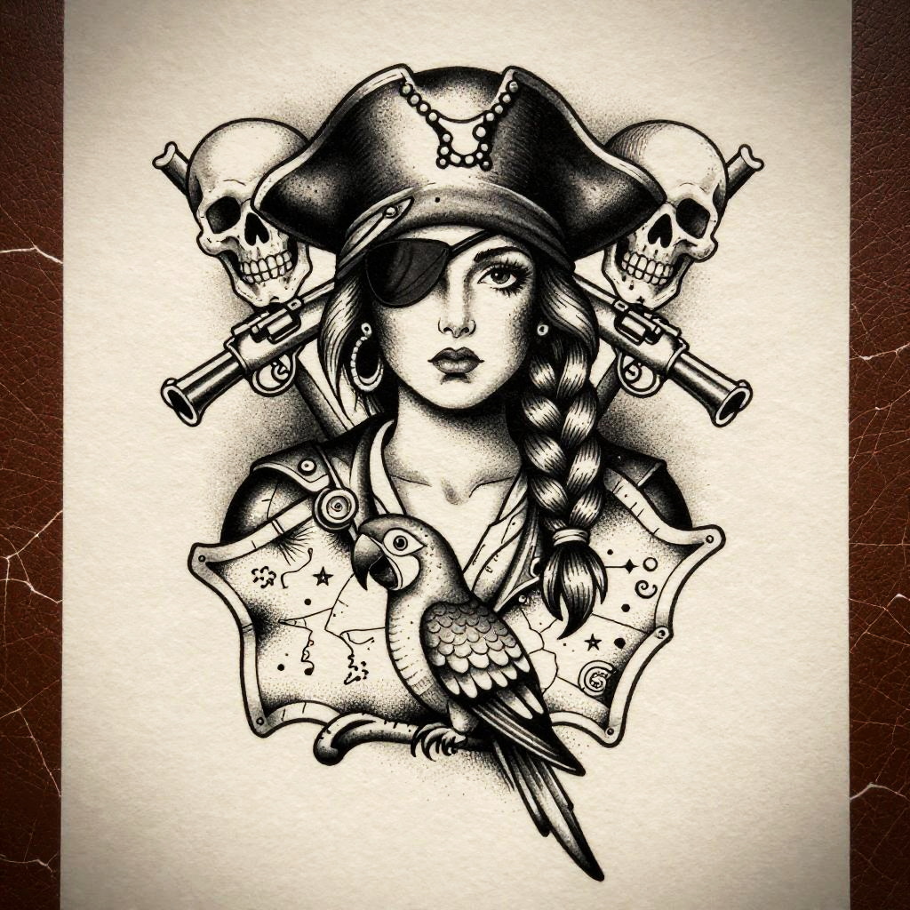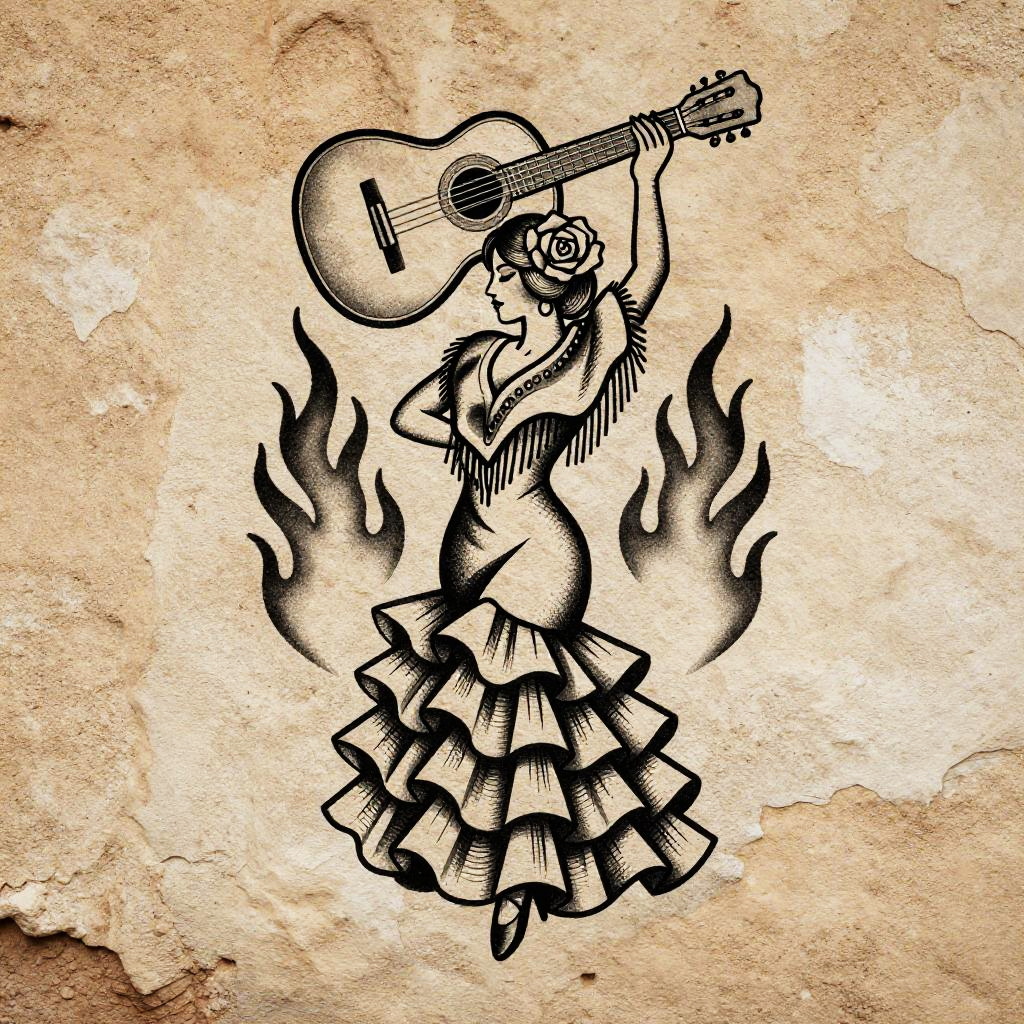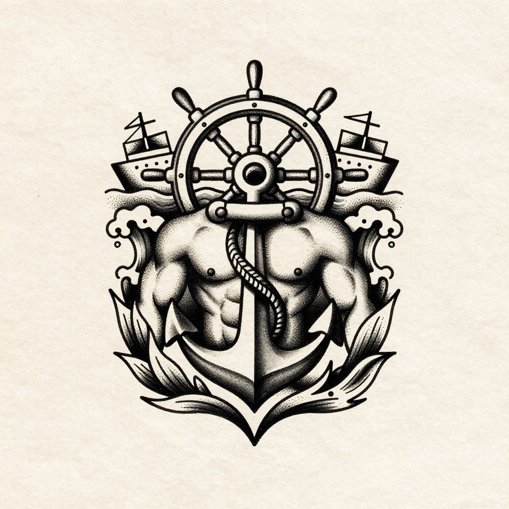 Monochrome ink illustration in a vintage tattoo flash aesthetic featuring young man with slicked-back hair and piercing eyes, framed by dagger piercing a heart above, roses on either side, and a banner with text below. Printed on cracked leather texture, with crisp linework, stippling and crosshatching, bold negative space, subtle vignette, museum-print finish, high contrast, fine detail, gritty yet elegant mood.