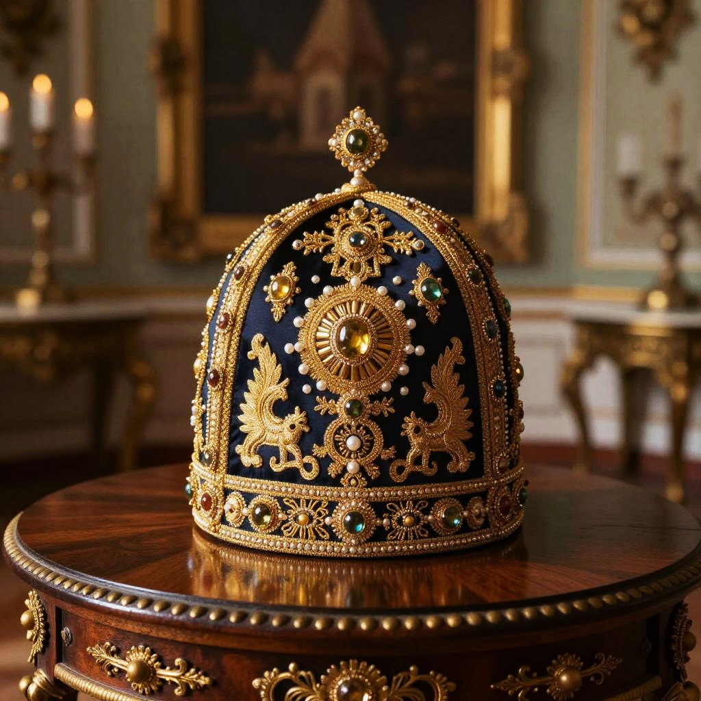 Opulent Tsar Hat on Antique Table