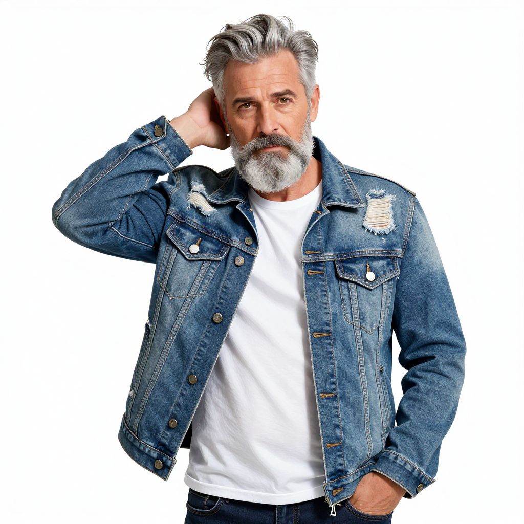Stylish Older Man in Denim Jacket