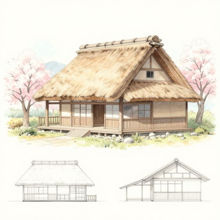 Hand-Drawn Japanese Rural Farmhouse Schematic